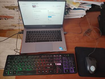 HONOR noutbuk + Logitech simli siçan +Logitech klaviatura + Tark işiqli klaviatura+Mause altliği