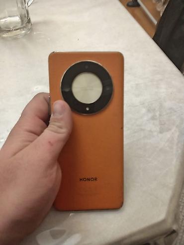 - Arxa panel: böyük dairəvi kamera adası, HONOR loqosu. Süni dəri tutuşu artırır və barmaq izi saxlamır.