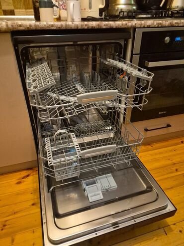 Paslanmayan poladdan sərbəst quraşdırılan qabyuyan maşın - Korpus: inox/paslanmayan polad, tam ölçülü (təxminən 60 sm en) - Ön paneldə idarəetmə düymələri və işıqlı göstəricilər - Üst hissəsi düz ...
