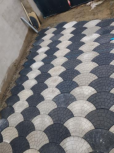 - Həyət, giriş yolu və ya qaraj üçün yarımay formalı dekorativ beton trotuar daşlarının döşənməsi