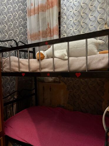 - Çarpayı: möhkəm metal karkas, iki mərtəbə. Yuxarı mərtəbə qoruyucu məhəccərlə. Yan tərəfdən çıxmaq üçün pilləkən. Rəng – qara. Çərçivədə ulduz və ürək stikerləri. Hər mərtəbə tək nəfərlik döşək ölçüsünə uyğundur.