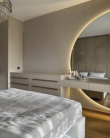 - Asma tualet masası: iri dairəvi güzgü, perimetr üzrə LED işıq, konsol tipli masa