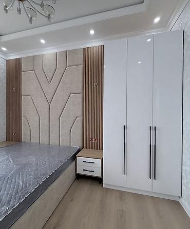- Komplekt: yumşaq başlıqlı çarpayı (qaldırılan baza ilə), 2 ədəd tumba, 3 qapılı şkaf, vizaj masası və puf.