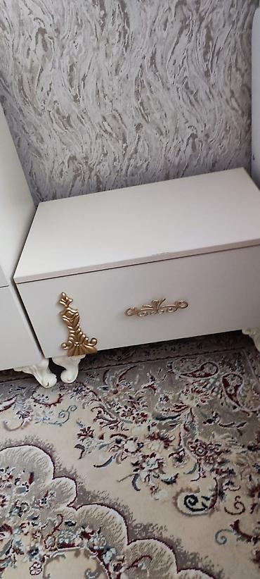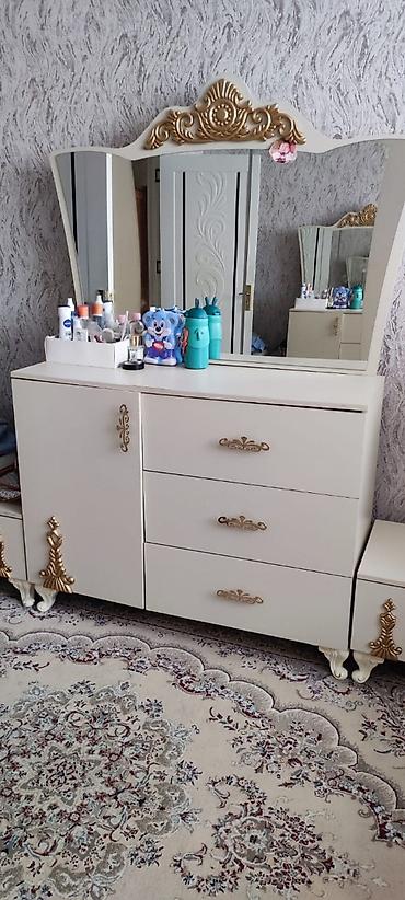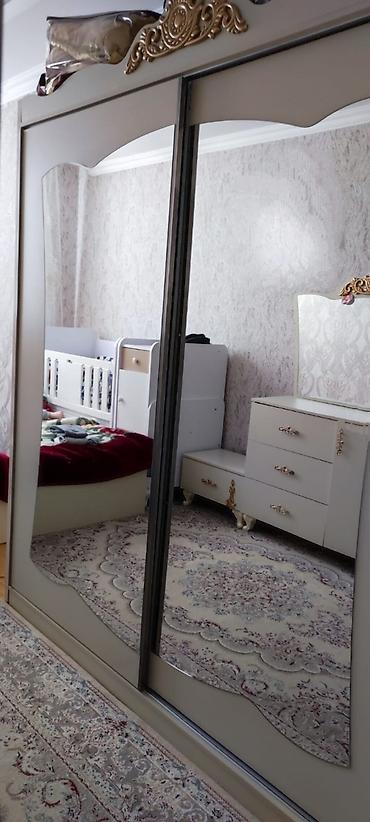 Yataq otağı dəsti – klassik krem-qızılı dizayn Komplekt: - 2 qapılı güzgülü qarderob (dolab ölçüsü: 200×160×47 sm; asılqan, rəf və bölmələr) - 2 ədəd tumbə - 3 çekmecəli komod - Başlıqla birlikdə ...