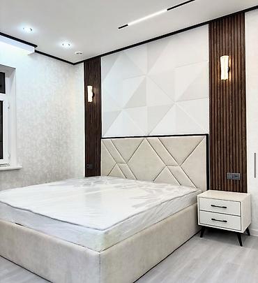 - Çarpayı: Yumşaq toxumalı, açıq bej rəngdə karkas və iri yumşaq başlıq. Başlıqda geometrik tikiş naxışları, qara nazik kontur. Aşağı profilli baza, iri ölçülü döşək üçün uyğundur.