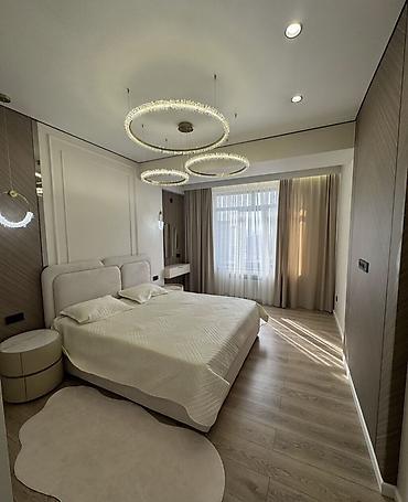 - Məkan hissini artıran açıq tonlar və iri pəncərə üçün uyğun pərdə sistemi