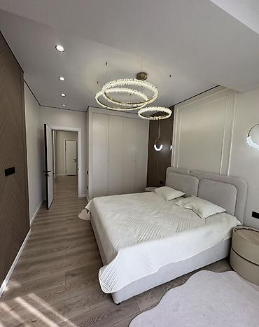 - Asma kristal halqalı əsas işıqlandırma sistemi (3 halqalı kompozisiya) və iki ədəd matching divar/aplik işığı