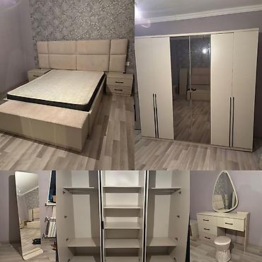 - Güzgülü makiyaj/komod masası: 3 siyirmə + yan bölmə, iri dekorativ güzgü, oturacaq taburet.