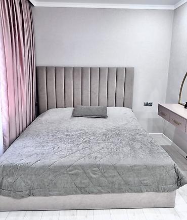 - Çarpayı: yumşaq toxumalı, hündür vertikal tikişli başlıq, aşağı baza. Neytral boz-bej rəng palitrası otağa uyğunlaşır.