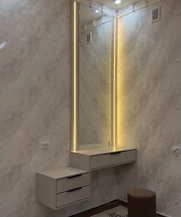 - Tam boy güzgülər məkanı vizual olaraq genişləndirir, LED işıqlandırma isə makiyaj/iş üçün rahatdır.