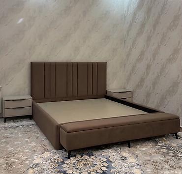 - Yumşaq başlıqlı, geniş ölçülü çarpayı karkası (parça üzlü, vertikal dekor tikişli başlıq, alçaq ayaqlı, ətrafı yumşaq bordürlü).