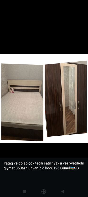 İstikbal Yataq və Dolab Dəsti Satılır(İkinci əl) Təmiz istifadə olunub, vəziyyəti çox yaxşıdır. ● Ortopedik yataq ● Geniş tutumlu dolab ● Heç bir qırıq / sınıq yoxdur ● Səliqəli saxlanılıb Ayrı-ayr...