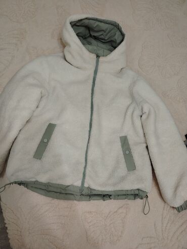Qadın/Gənc üçün ikiüzlü (reversible) qışlıq jaket - 2 tərəfli geyinmə imkanı: biri qara parça, digəri açıq bej yumşaq toxumalı səth - Kaptuşonlu dizayn - Ön hissədə ikiqat ikitərəfli fermer (zip) ...