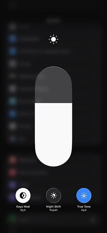 - Ekran ayarları: Koyu Mod açıq, True Tone açıq (şəkildə göstərilib)