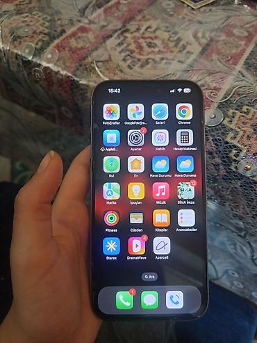 - iOS əməliyyat sistemi, ekranda Fotoşəkillər, Safari, Chrome, Xəritə, Musiqi, Cüzdan və s. standart/applar görünür.