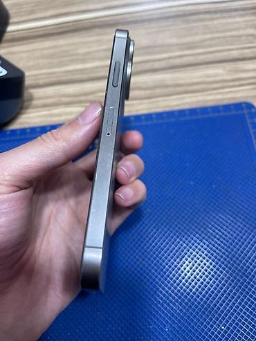 Apple iPhone (Titanium seriyası) – təbii titan rəngində Xüsusiyyətlər: - Korpus: fırçalanmış təbii titan çərçivə, düz kənarlar - Ekran: Super Retina OLED, Dynamic Island dəliyi görünür - Kamera: a...