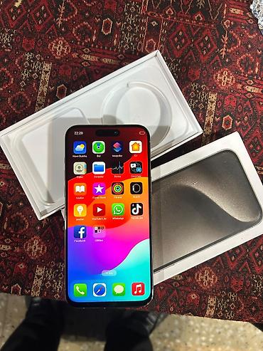 IPhone 15 Pro – 128GB 80 pil idealdı cızıq belə yoxdu qutu usb var.