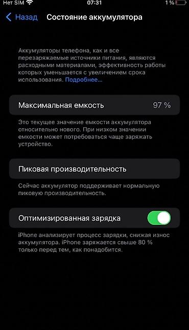 - Batareya sağlamlığı: 97% (Optimized Battery Charging aktivdir)