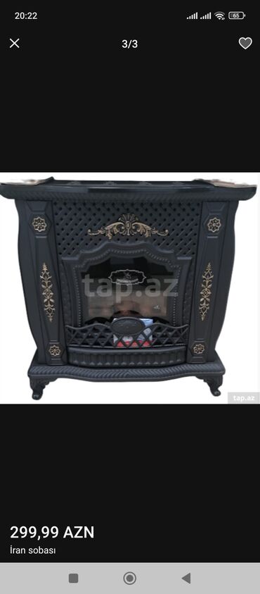 İran sobası, 75кв.м-lik sahə üçündür. Alinıb işlənməyib, şüşələri salamatdır, zajiqalkası işləkdir, qaz sızması yoxdur. Hamısı yoxlanılıb.