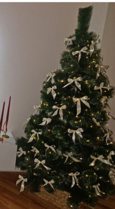 Süni Yeni il şam ağacı – bəzək dəsti ilə - Hündürlük təxminən 120–130