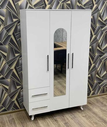 6 qapılı ağ rəngli paltar şkafı - Modern, minimal dizayn; hamısı eyni tonda parlaq ağ səth - Daxildə geniş asılqan bölmələri, yan tərəflərdə rəfli hissələr - Aşağı hissədə rahat, tutacaqlı 4 dərin...
