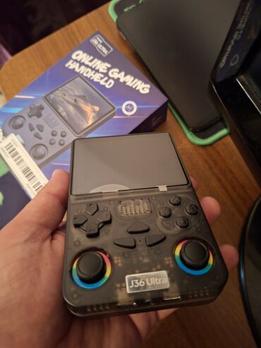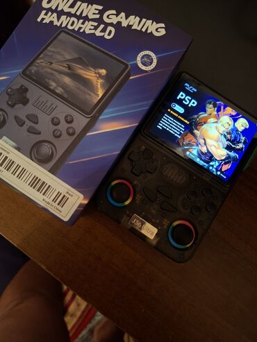 R36H Retro Oyun Konsolu. Xaricdən almışam, tam yenidir, ekrandakı plyonkanı belə çıxartmamışam. Qutudan çıxan bütün aksesuarlar tam vəziyyətdədir: Adapter, yeni ekran qoruyucu və 64 GB yaddaş kartı...