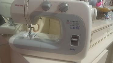 Qutuya daxil: tikiş maşını Janome 2039 və elektrik ayaq pedalı.