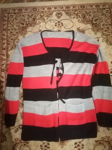 Zolaqlı qadın kardiqanı - Model: düyməli, V-yaxa - Rəng palitrası: boz, krem/ağ və qara tonlarda eninə zolaqlar - Parça: elastik trikotaj, incə ribli toxuma - Uzunqol, yüngül və bədənə oturan kəsi...