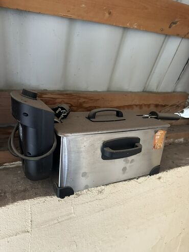 - Dərin fritöz – paslanmayan poladdan korpus, təxmini 3.5 L yağ tutumu etiketi, çıxarılan səbət, temperatur tənzimləyicisi; tez qızartma üçün münasibdir.