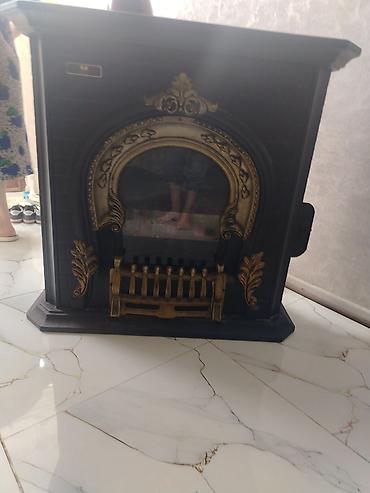 - Yan tərəfdə qapı/lyuk; iç hissədə saxta kömür/odun görünüşü