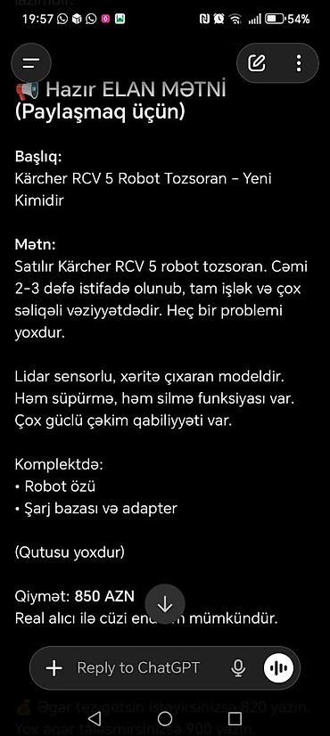 Kärcher RCV 5 robot tozsoran Xüsusiyyətlər: - Lidar sensorlu, xəritə
