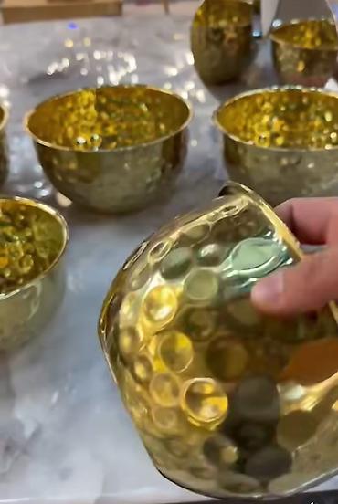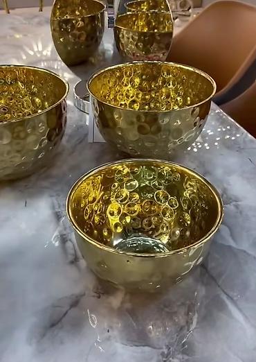 Qızılı rəngdə dekorativ metal kasa dəsti