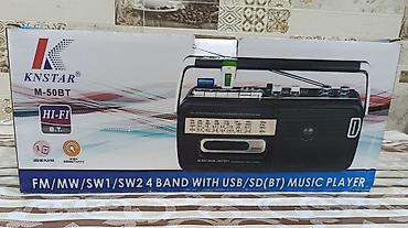 Qutu üzərində: “FM/MW/SW1/SW2 4 band with USB/SD(BT) music player”, “HI-FI”, “High Sensitivity”, model KNSTAR M-50BT.
