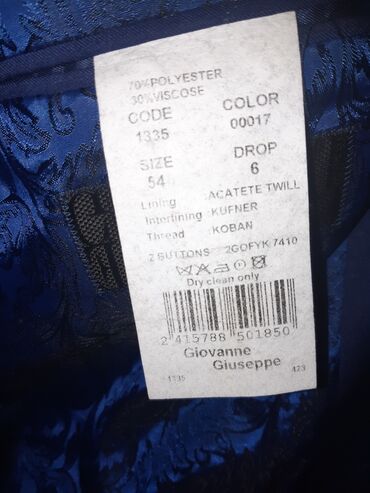 Kostyum [FERNANDO COSTA]əla vəziyyətdədir 2,3 dəfə geyinilib təzə kimidir,ölçüsü 5XL(size 50-- drop 6)rəngi şəkildə tam əks olunmur tünd göy rəngdədir və səliqəli saxlanılıb.Realda dahada gözəl gör...