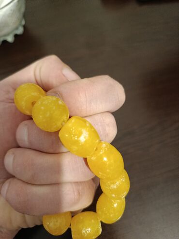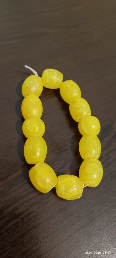 Cox qedim kehraba zop eriden muncuq. Sarı rəngli muncuq təsbeh - Material: parlaq sarı, silindrik/kvadratabənzər muncuqlar - Hissələrin sayı: təxminən 18 ədəd iri muncuq + uc hissədə bəzək muncuğu...