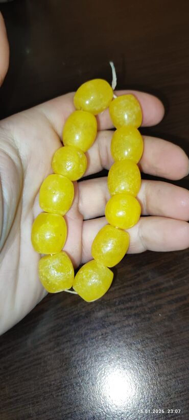 Cox qedim kehraba zop eriden muncuq. Sarı rəngli muncuq təsbeh -