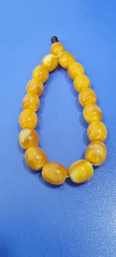 Südlü kəhrəba üslubunda təsbeh - Rəng: bal-sarı tonlarda südlü