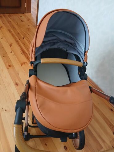 - Material: dərimsi suya və kirə davamlı parça, portağal-qəhvəyi kapot və örtük