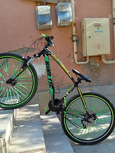- Təkərlər: 29” (böyük ölçülü), yaşıl rəngli ikirəngli haşiyələr və çoxsaylı şpislər
