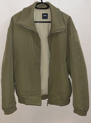 ZARA MAN Basic bomber gödəkçə - Rəng: zeytun-yaşıl (xarici), parlaq çəhrayı astar - Ölçü: L (etiketdə: EUR L/USA L/MEX 30) - Material: yüngül, parıldayan sintetik parça; elastik trikotaj manjet və...