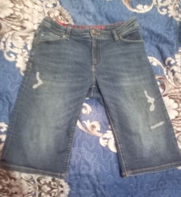 H&M cins şort - Model: Slim Fit Shorts, Adjustable Waist (tənzimlənən bel) - Material: 99% pambıq, 1% elastan – nəfəsalan, yüngül elastikliklə rahatlıq verir - Rəng/effekt: Açıq-boz yuyulmuş (wash...