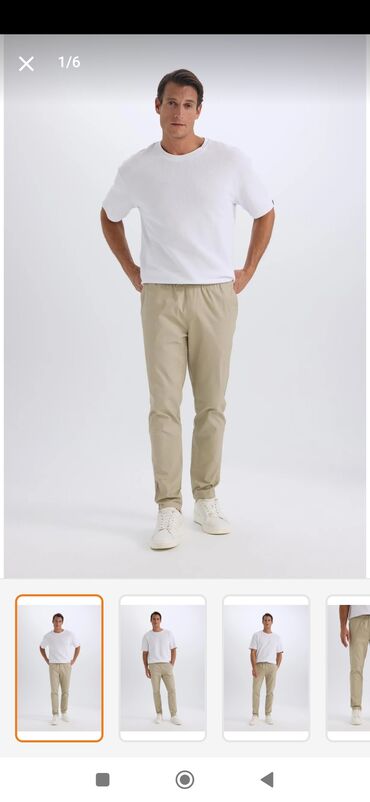 hamısı 40m tək 10m razmer şəkil üstə yazilib Kişi şalvarları – müxtəlif rəng və ölçülər - Model 1: Bej rəngli, düz kəsim. Ön hissədə iki düyməli qapanma, yan ciblər, beldə kəmərkeçirənlər. Üzərind...