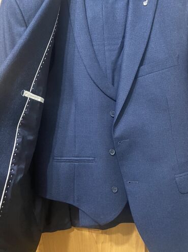 Məhsul: Kişi kostyumu – “Marco Moncali” (Men’s Wear) - Rəng: Parlaq kobalt/mavi - Dəst: 2 parça – pencək və şalvar - Parça: Etiketdə “Wool Blend” (yun qarışığı) qeyd olunur; astar parlaq, hamar fa...