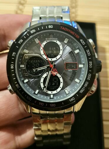 Casio kişi qol saatı - Model: Casio, WR 50M (50 metr suya davamlılıq – gündəlik yuma/yağış üçün uyğundur) - Korpus və qolbaq: paslanmayan polad, gümüşü rəng - Çərçivə: bordon-qırmızı tonlu bəzək h...