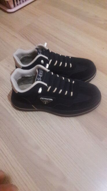 Kişi idman ayaqqabısı – zeytun-yaşıl rəng - Üst: sintetik dəri və tekstil kombinasiyası, tikişlərlə möhkəmləndirilmiş panellər - Rəng: zeytun-yaşıl, qara detallarla - Marka yazısı: yan hissədə “BO...