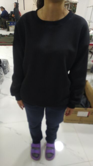 dərzi işci tələb olunur xirdalan köhnə bazarin yani - Qara rəngdə sadə sweatshirt: dairəvi yaxalı, uzunqollu, düz kəsim. Yumşaq toxuma, qatlanmış ətək və qollar. -