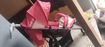 Uşaq arabası – My Baby (logo üzərində “exclusive my baby”). Xüsusiyyətlər: - Rəng: göy-çəhrayı tonlarda - Təkərlər: iri və dayanıqlı, qabaq təkərlər fırlanan tip; arxa təkərlər əyləcli - Çərçivə:...