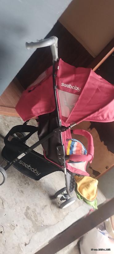 Seebaby uşaq arabası – yüngül və rahat “umbrella” tipli model. Xüsusiyyətlər: - İkiqat təkərlər (4 cüt) – sabitlik və asan idarəetmə - Tənzimlənən arxa dayağı və oturacaq kəməri - Ön qoruyucu tuta...