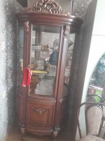 Klassik üslubda qonaq otağı dəsti Dəst tərkibi: - Böyük vitrin şkaf: ön və yanları şüşəli, iç-içə rəflər, dekorativ oyma elementlər, 4 alt qapı və 4 üst çekmece. Serviz və biblolar üçün ideal eksp...