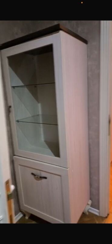 - Vitrinlərdə şüşə rəflər sayəsində qab-qacaq, suvenir və kolleksiya əşyalarının nümayişi üçün işıqlı, görünən məkan.